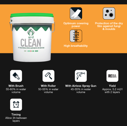 CLEAN هو طلاء جداري يتميز بالتهوية المثالية وقوة التغطية ومجموعة واسعة من الحركة التي تحمي الطبقة الجافة من العفن.
