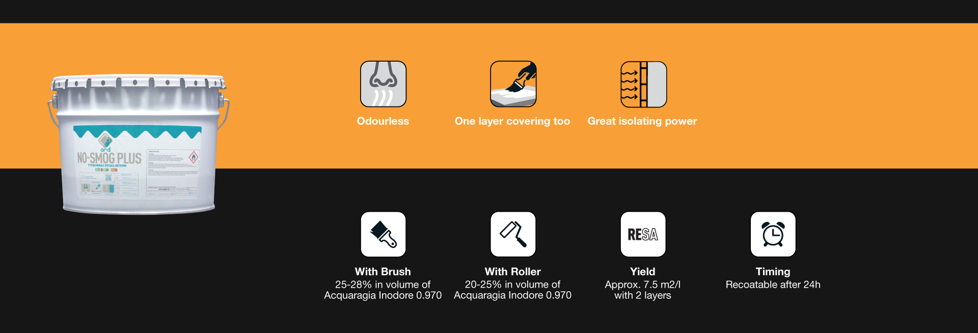 NO-SMOG PLUS هو طلاء معتم للديكورات الداخلية يتميز بنفاذية عالية لبخار الماء. وهو مناسب بشكل خاص لطلاء الأسطح الملطخة (الدخان والنيكوتين والسخام والتدفئة والتسربات القديمة).