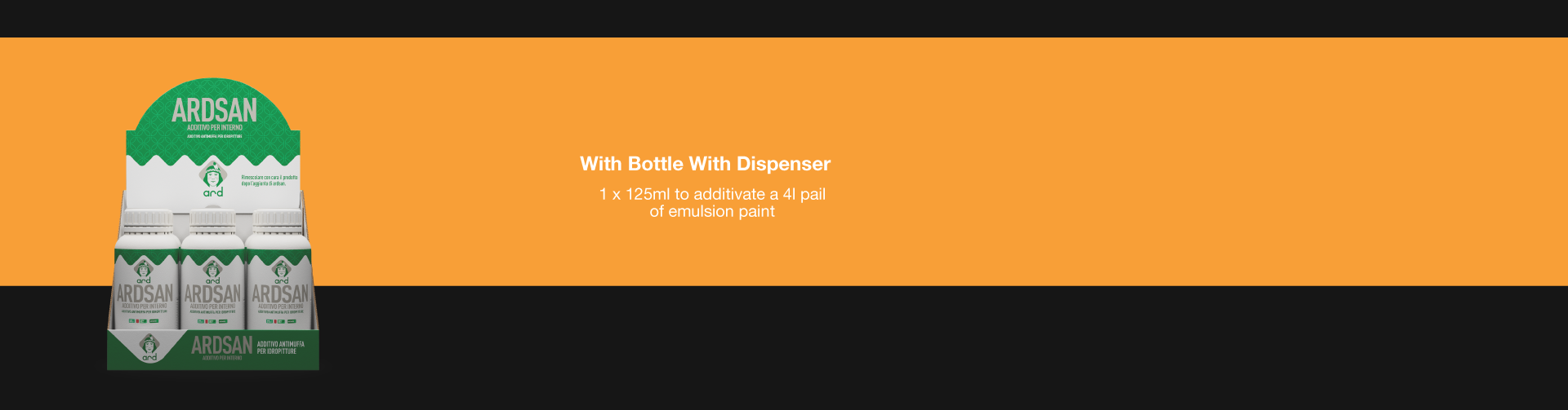 ARDSAN ADDITIVIO PER INTERNO is a concentrated solution of specific broad-spectrum chemical agents devised to be added to our traditional emulsion paints to inhibit the growth of mould, fungi & algae.